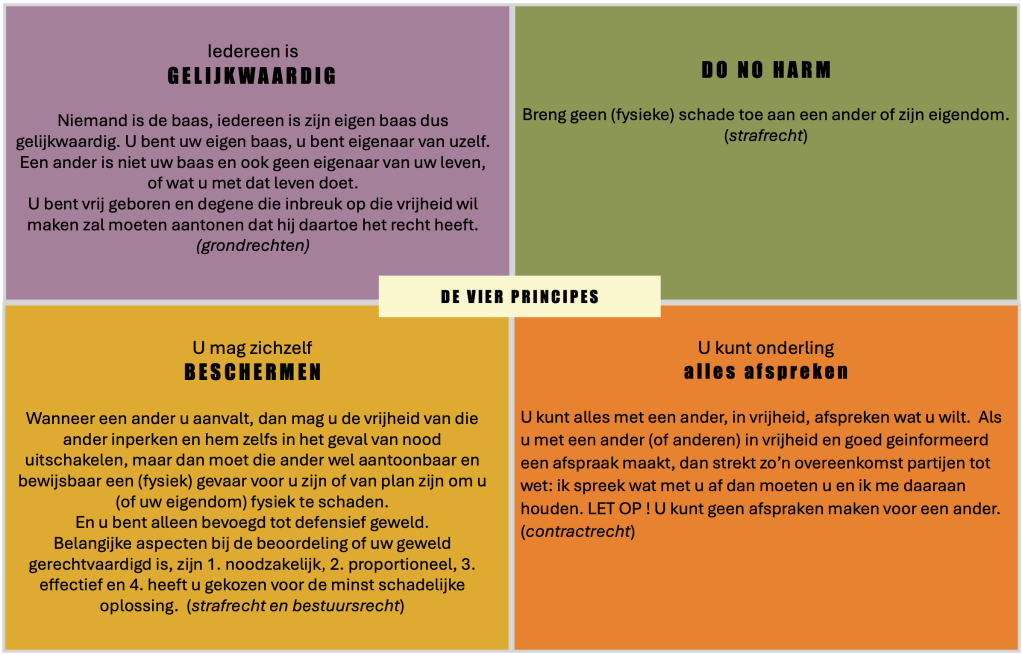 Wanneer je ons rechtssysteem benadert vanuit een principieel logisch perspectief dan komen er vier principes naar voren; vier grondbeginselen die ons juridische bouwwerk ondersteunen en waarnaar elke rechtsregel is terug te leiden.